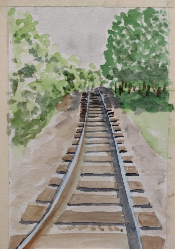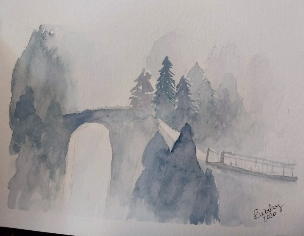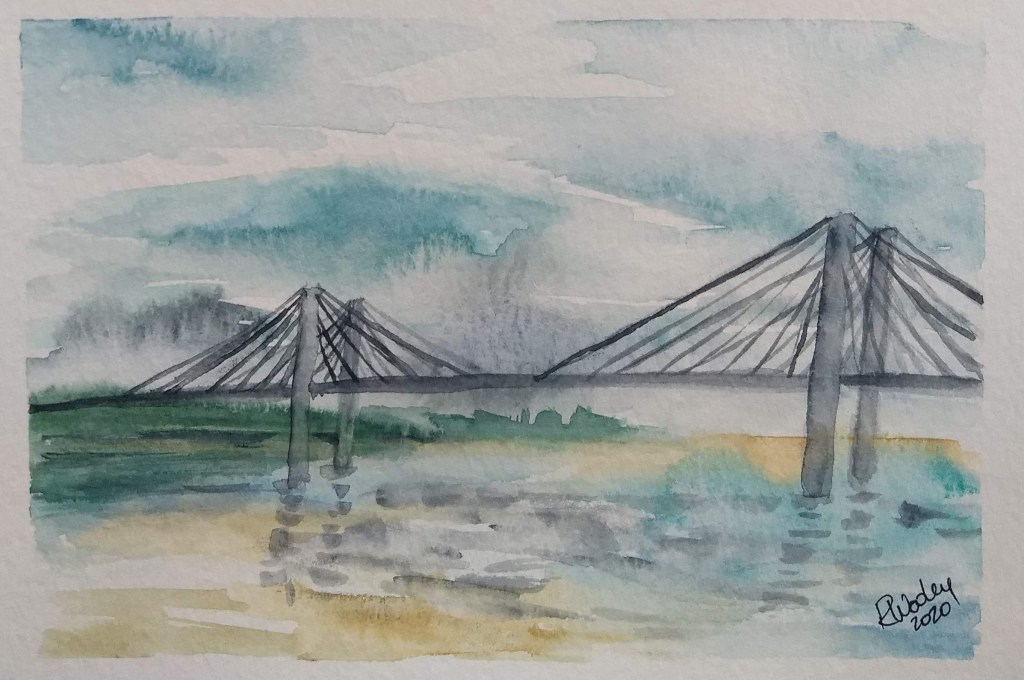 Bridge in Lexington, KY — challenge painting #2. For this one, I just started painting, without sketching in pencil first.