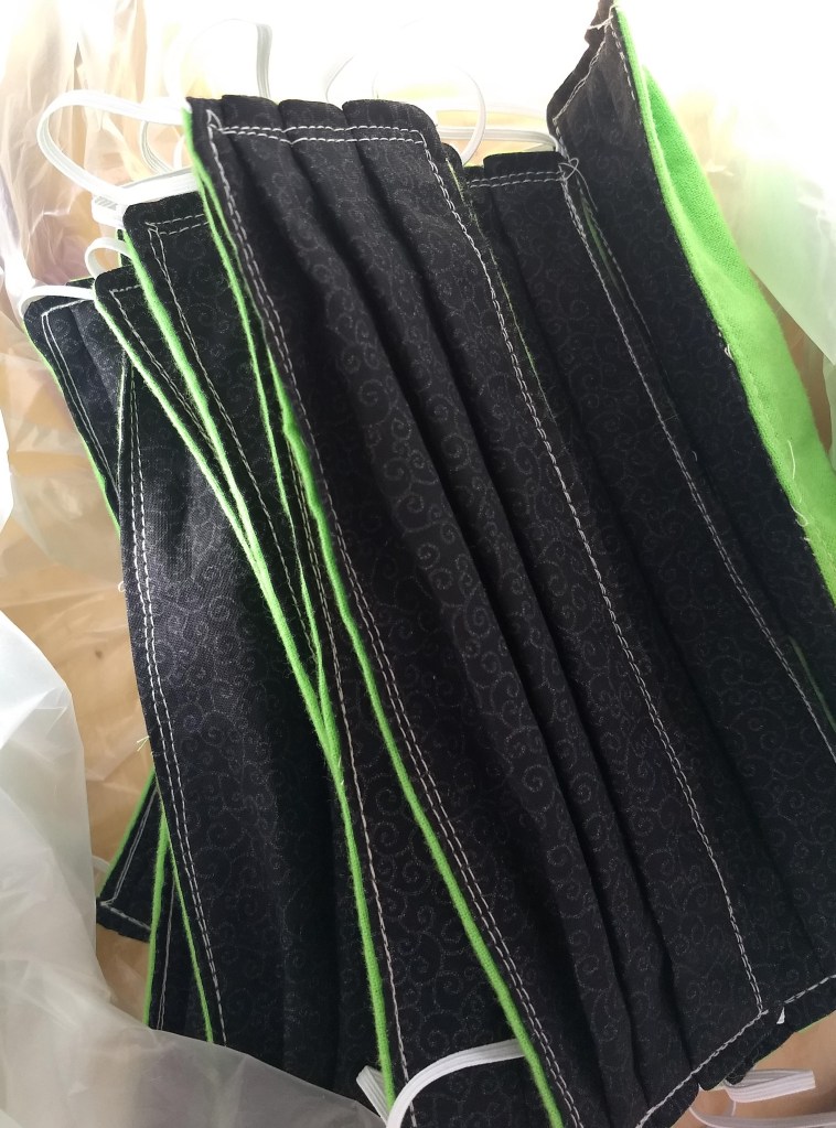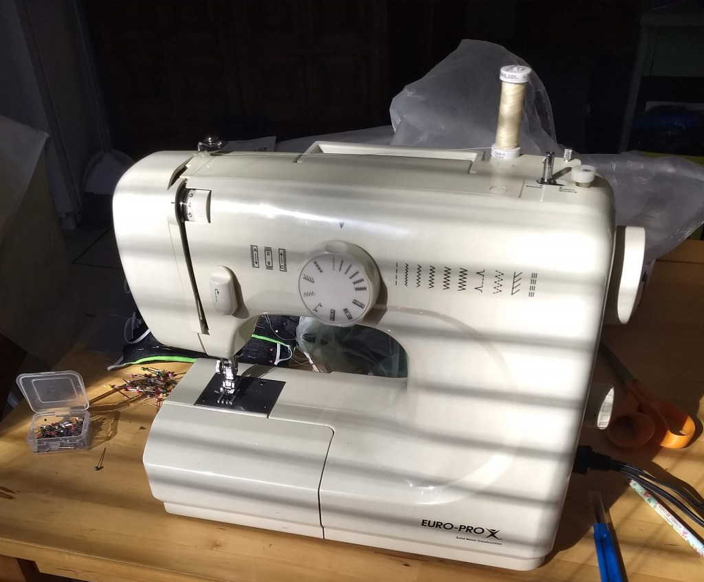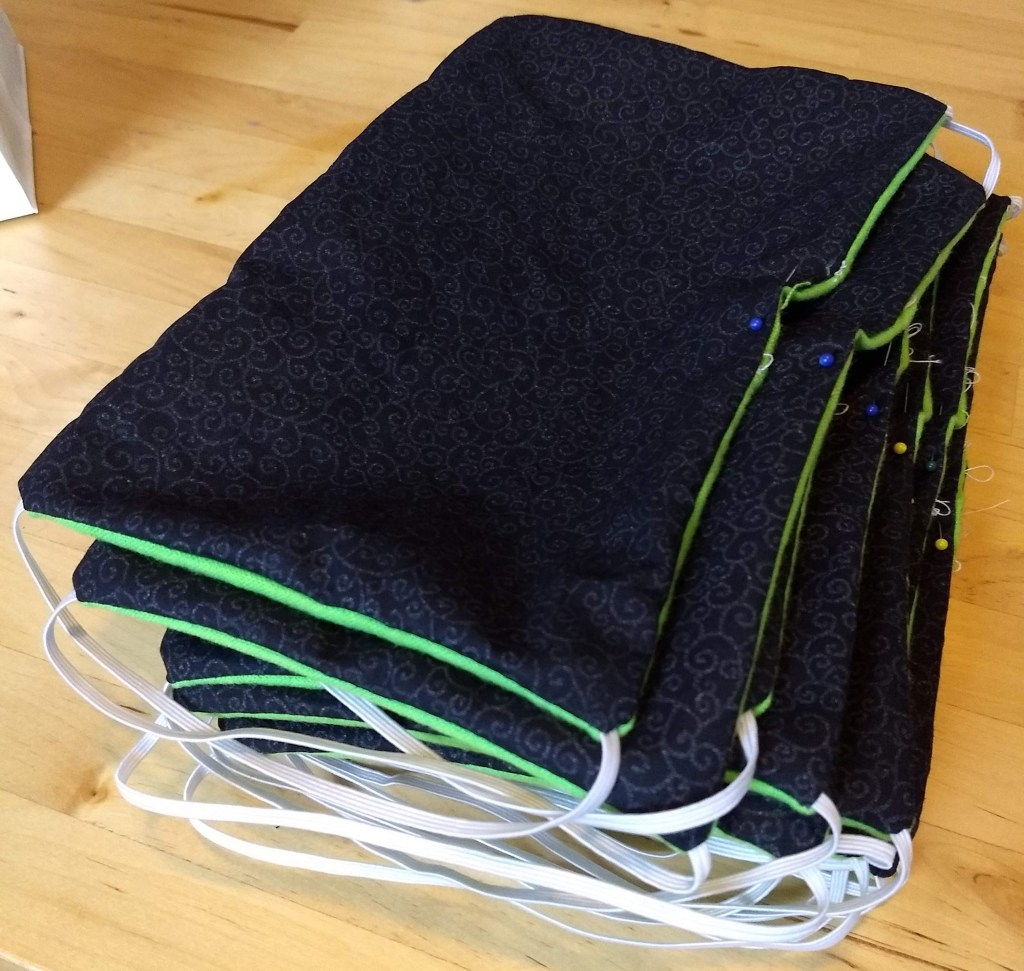 Thankfully I still have the instruction manual for the sewing machine, and a mother-in-law who made a living in the fiber arts and who was able to do some troubleshooting via video call. Two broken needles and a couple drops of lubrication oil later, I managed to stitch up most of my first batch of 24 masks; after another bent needle, I managed to get the right type for the job and finish up the rest. Then, a few masks into the second batch, the whole machine started to seize up completely. Given that all the service shops are likely closed, I am especially fortunate to have a partner who can figure out how to take the machine apart (two different times) and where to oil it; as of right now, at least, it’s running beautifully.