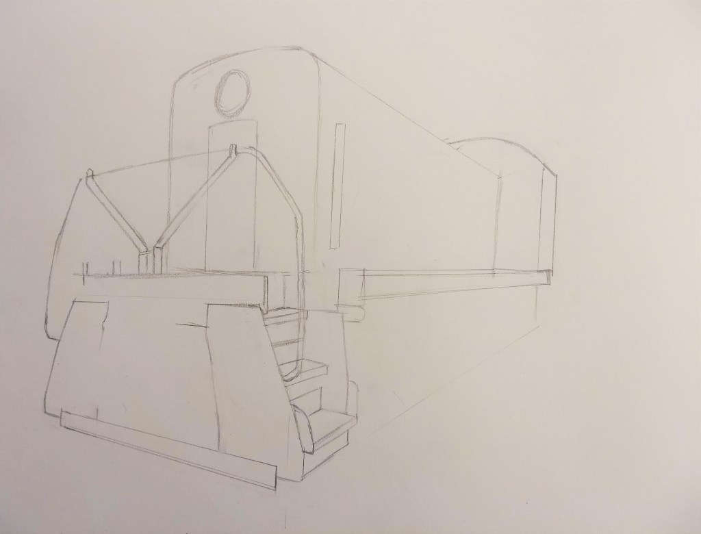 And finally, this isn’t really fall-themed, but I figured I’d share the train drawing I’ve started this month from one of my IRM trip photos. It’s not much to see yet, but I think it’s far enough along that you can tell what it is, haha.