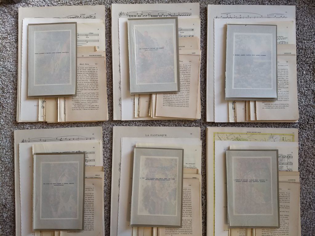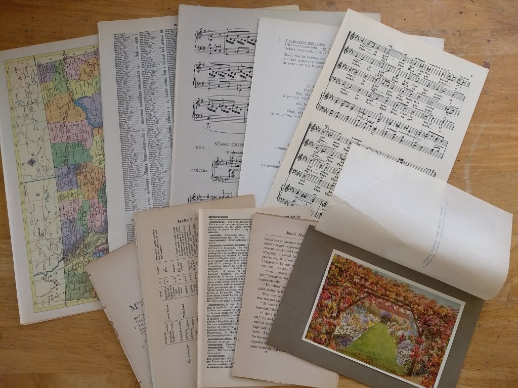 One of those other things is a new project that I hope to have up and running just after the new year. This month, I started building a new Etsy shop, which will feature handmade junk journals and journal-making supplies. My interest in the form has been developing and growing over the last year, and I’ve been gathering supplies and creating kits over the last few weeks especially. My specialty will be vintage book pages, but I have a few ideas for branching out once I get those in order. I will, of course, make the announcement here once the new shop is live, and will have a few pre-made junk journals ready by the time I launch too. If you remember the Vintage Simplicity pattern fabric journal I shared here earlier this year, that will be available in the shop; I have two more journals in process, with hopes of completing them for the launch. Here are some examples of what will be available: