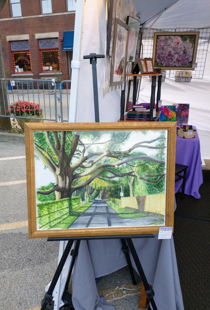 The market ran for two days: Friday we were there from 5pm-11pm and Saturday from 12-10pm. I stationed my painting “Golden Afternoon” on an easel at the front of my booth and was pretty happy to see how many people stopped to look at it and then come inside the tent. My booth mate and our tent neighbor were both cool (I hadn’t met either of them before the festival), and I got to talk about my art, get some feedback, and even make a little extra money. The days were definitely long, and I took most of Sunday to recover, but overall it was worth it and I’m really hoping to get into a holiday market or two before the end of the year. (I have one application in now and a couple other leads for November and December, so here’s hoping!)