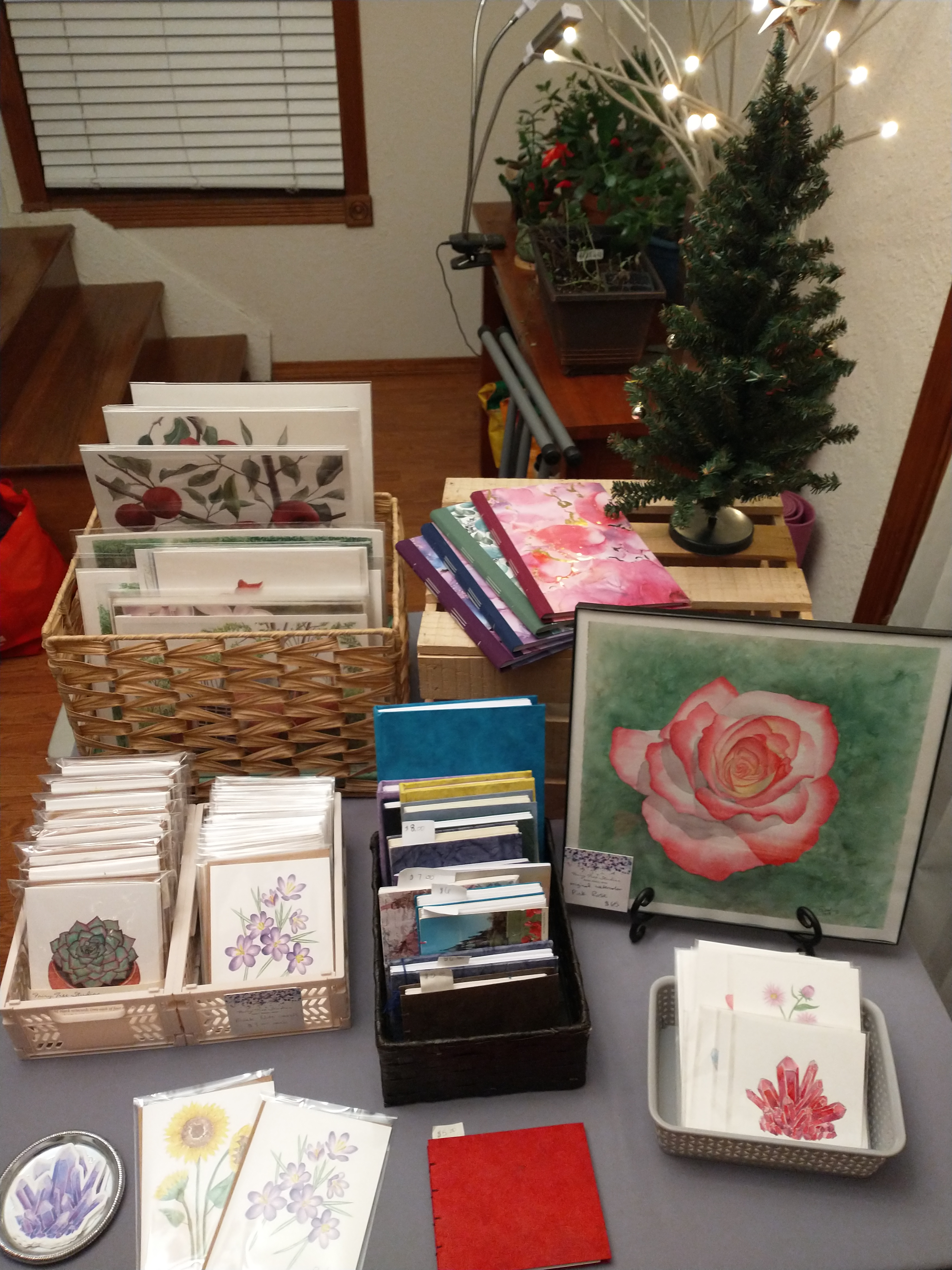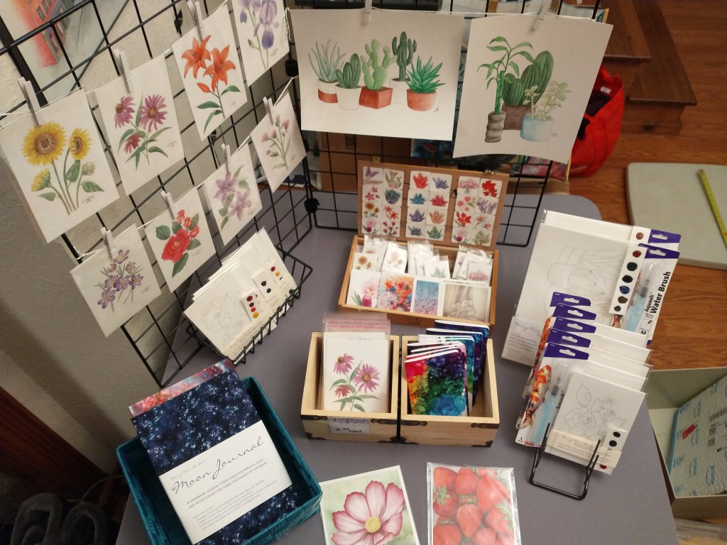 This was quite likely my last market of the year; I’m painting a few more wood slice ornaments and am hoping to finish my handful of moon journals before Christmas so I can list them and some other things on Etsy. After that (and my commission), I’m going to take the end of the year and January “off” to do some experimental projects and some art just for me, and to plan some next steps for FTS. I learned a lot from these recent markets, and it’s given me some good ideas to work on for future events.