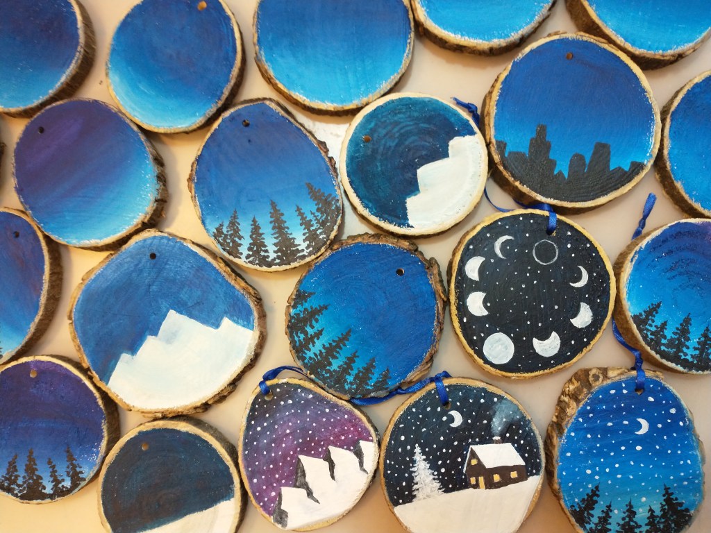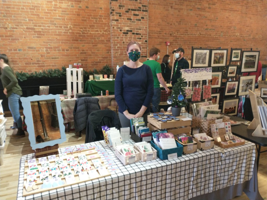 It was the first year that the market was held in this venue (which is a lovely newly-renovated event space called “The Venue”) and people showed up for it. Most of the day, the market was pretty full; at first it seemed like people weren’t buying as much as at Urbana’s MM, but according to my sales receipts it ended up about the same. There were of course lots of people buying gifts last-minute, and several people told me they were walking around to see everything and then coming back to buy (and several of them did come back). Besides ornaments and journals, I sold most of my paint-it-yourself kits, some stickers, and a couple note card sets. I’m going to be busy in January building all my inventory back up, but what a great problem to have!