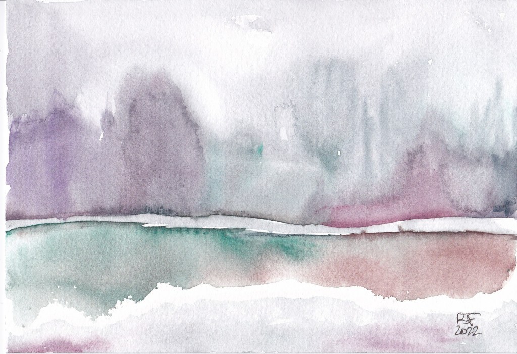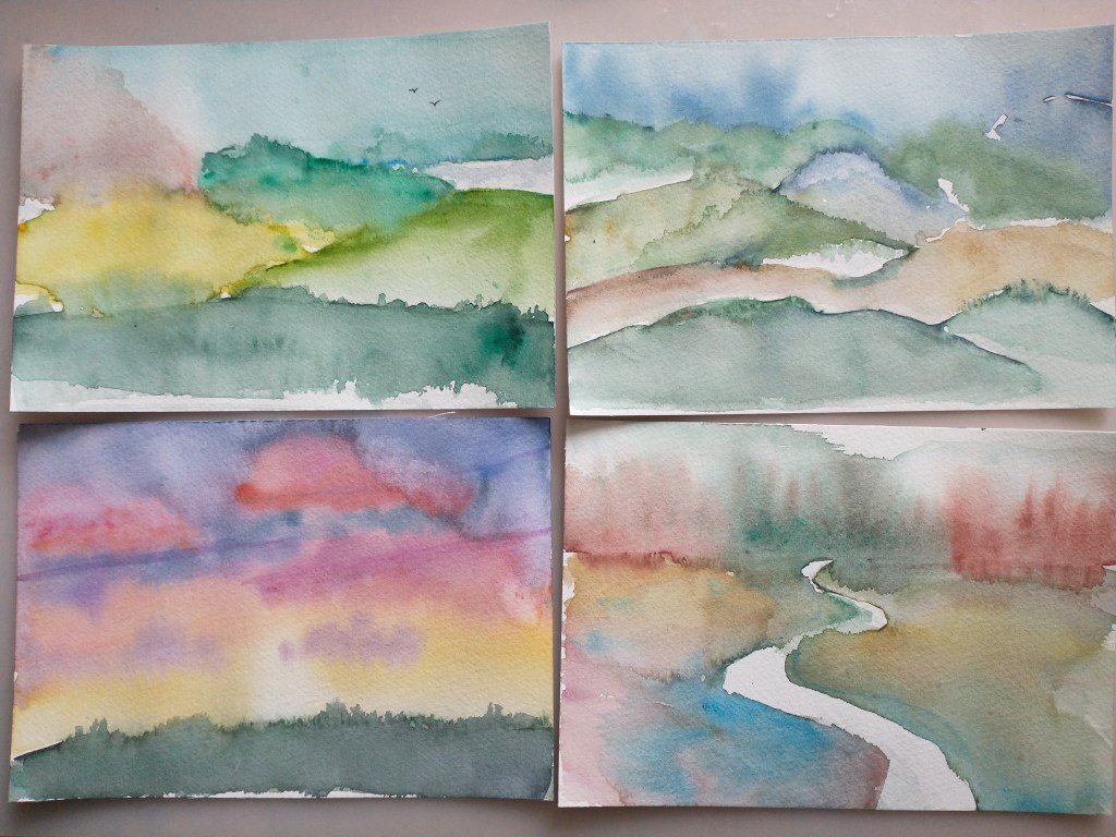 - Once your painting is dry, feel free to add in any small details you’d like to – birds in the sky and trees in the foreground, for example. If you’re using a block like I did, wait until the paper is completely dry before you remove it from the block.