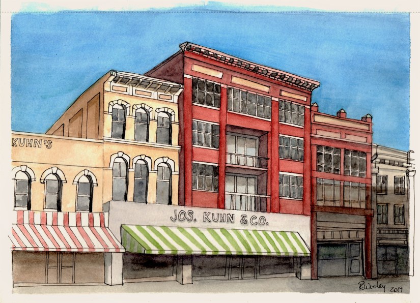 Original watercolor painting, 10×14.” Currently on display at The Vault.