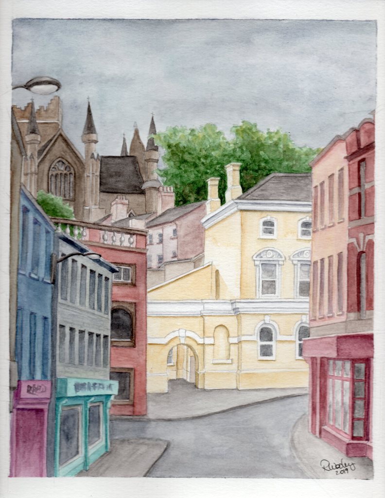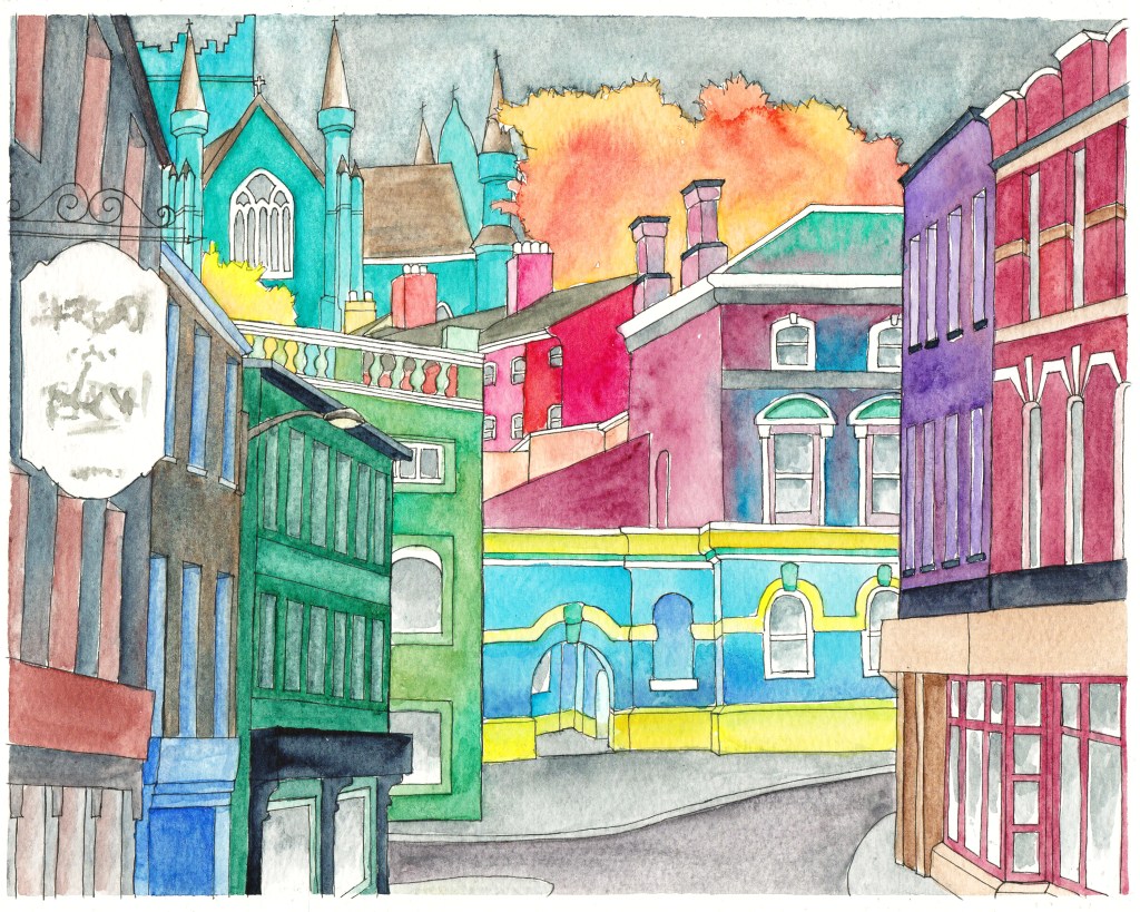Original watercolor painting, 11×14.” Currently on display at The Vault.