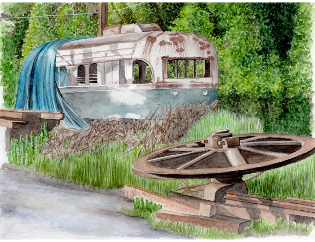 Original watercolor painting, 11″ x 14,” 2018. Currently on display at The Vault.
