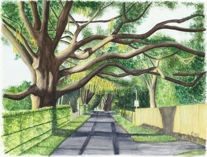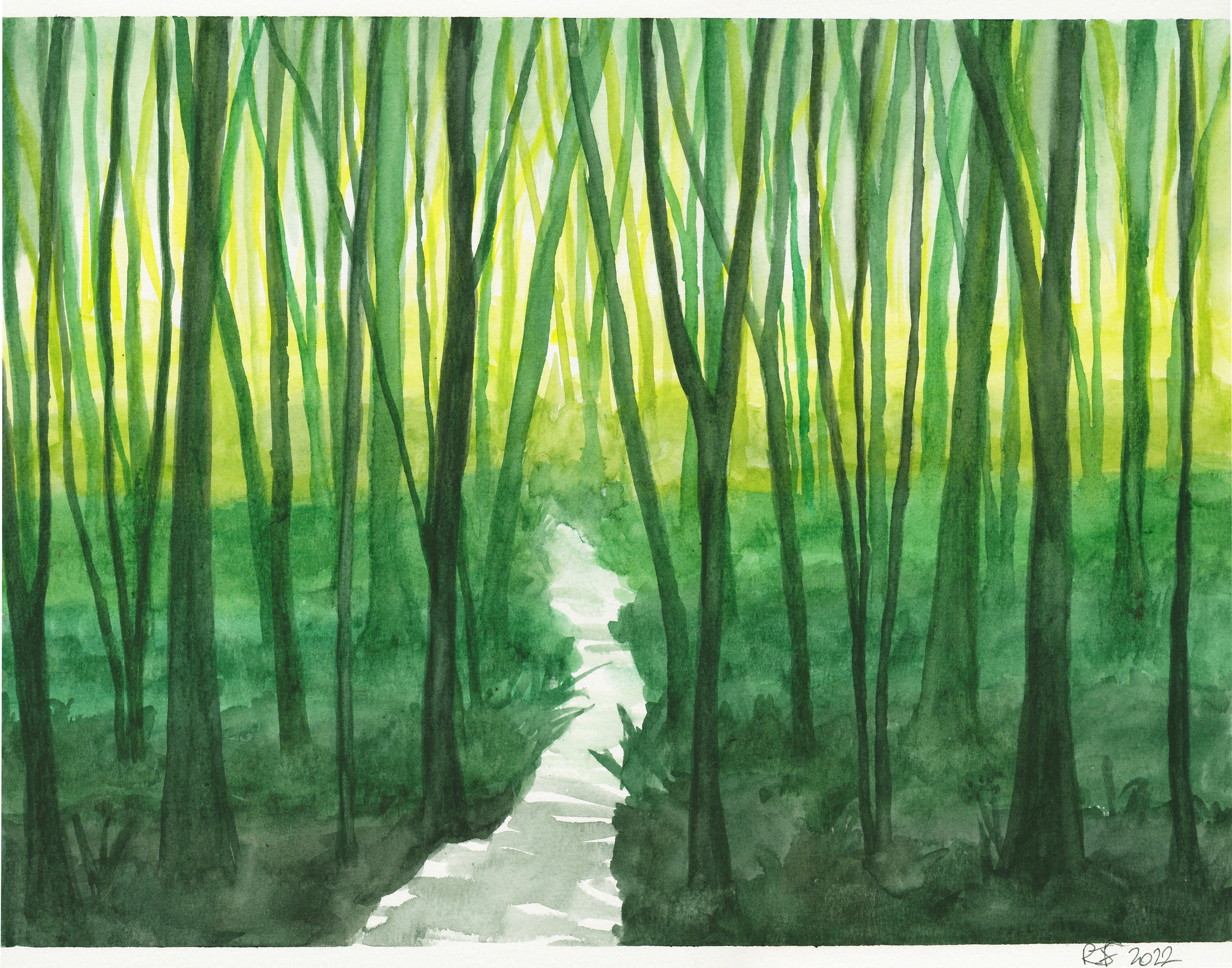 Original watercolor painting, 2023, 12″ x 18.” Sold. Prints available.