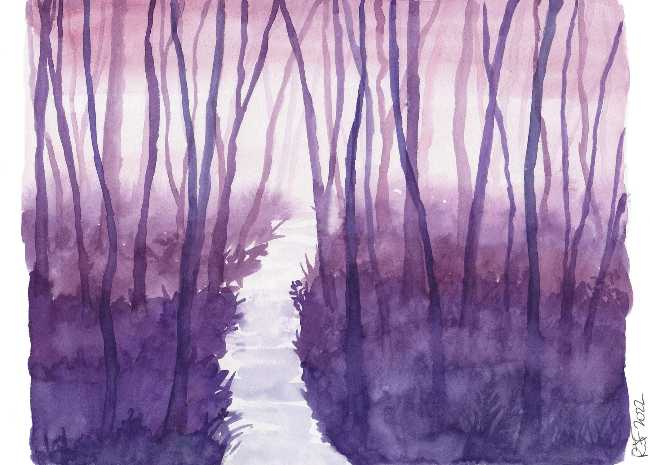Original watercolor painting, 2022, 11″ x 14.” Sold. Prints available soon via Etsy.